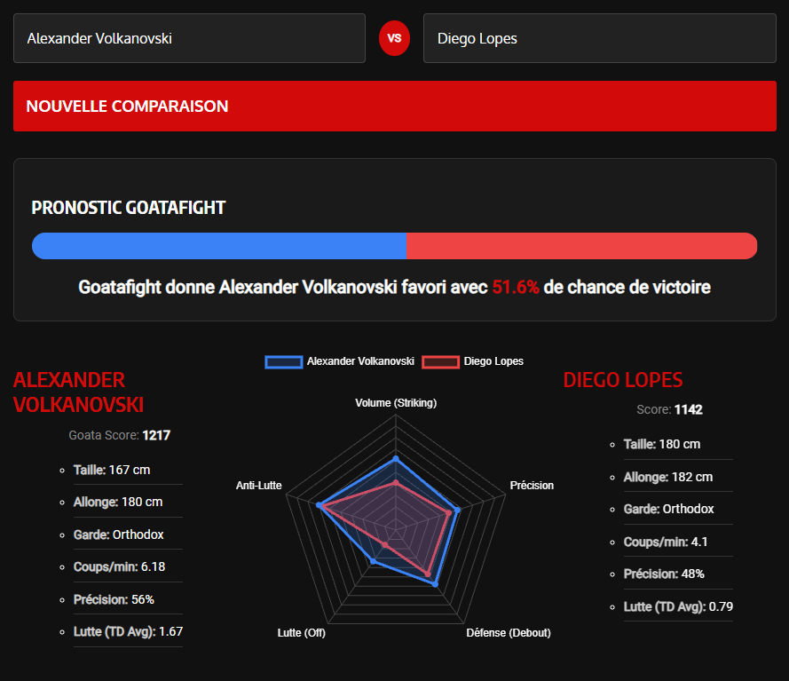 | Statistique | Volkanovski | Diego Lopes | Différentiel |